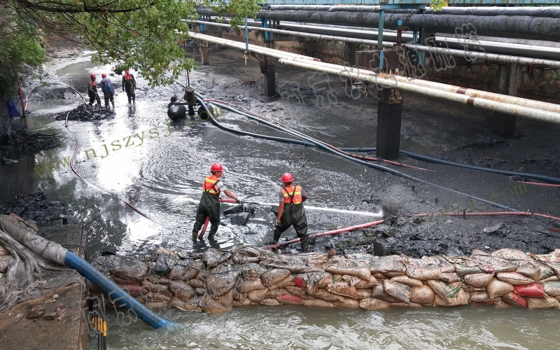 如采用水力冲挖清淤的方法,需要铺设泥浆泵专用8″硬尼龙管,通过泥浆泵抽排,并经管道接力输送到泥浆池内。采用干挖法,需要用渣土车将清挖出的泥浆、土块或垃圾、芦苇根、杂草等外运,运输过程中尤其要避免出现漏撒现象,污染环境。