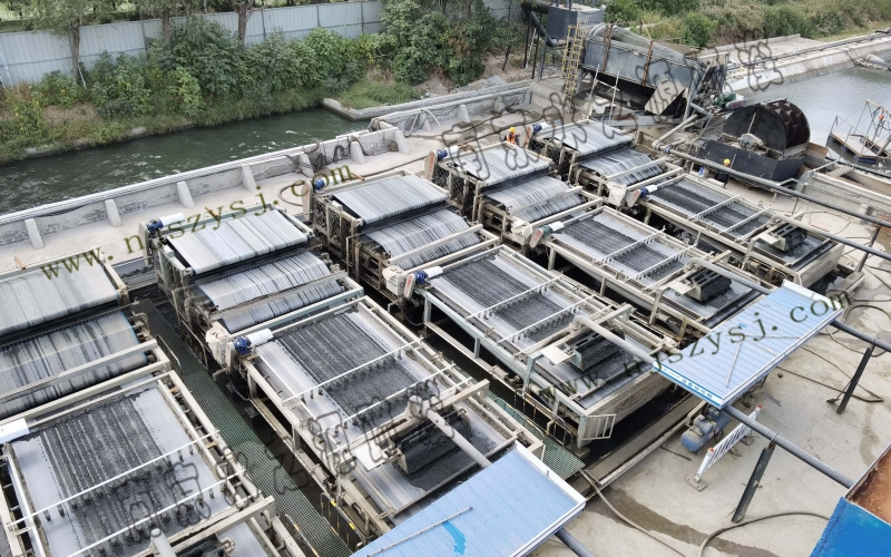垃圾分离系统:河道淤泥输送至垃圾分拣机,垃圾分拣机由于筛网表面间隙小、平滑,背面间隙大,排水顺畅,不易阻塞,固态物质被截留,过滤后的水从筛板缝隙中流出,同时在水力作用下,固态物质被推到筛板下端排出,从而将底泥中石块、生活垃圾、建筑垃圾等达到固液分离目的。